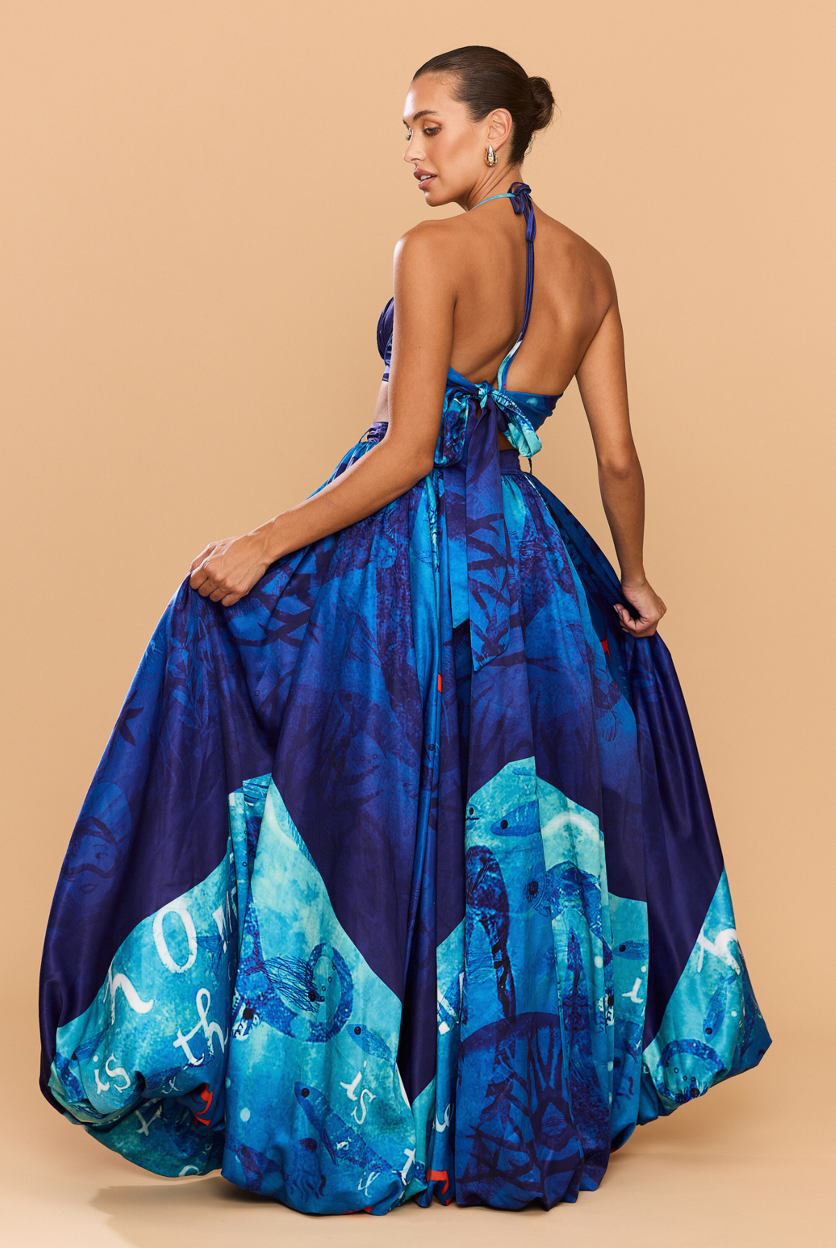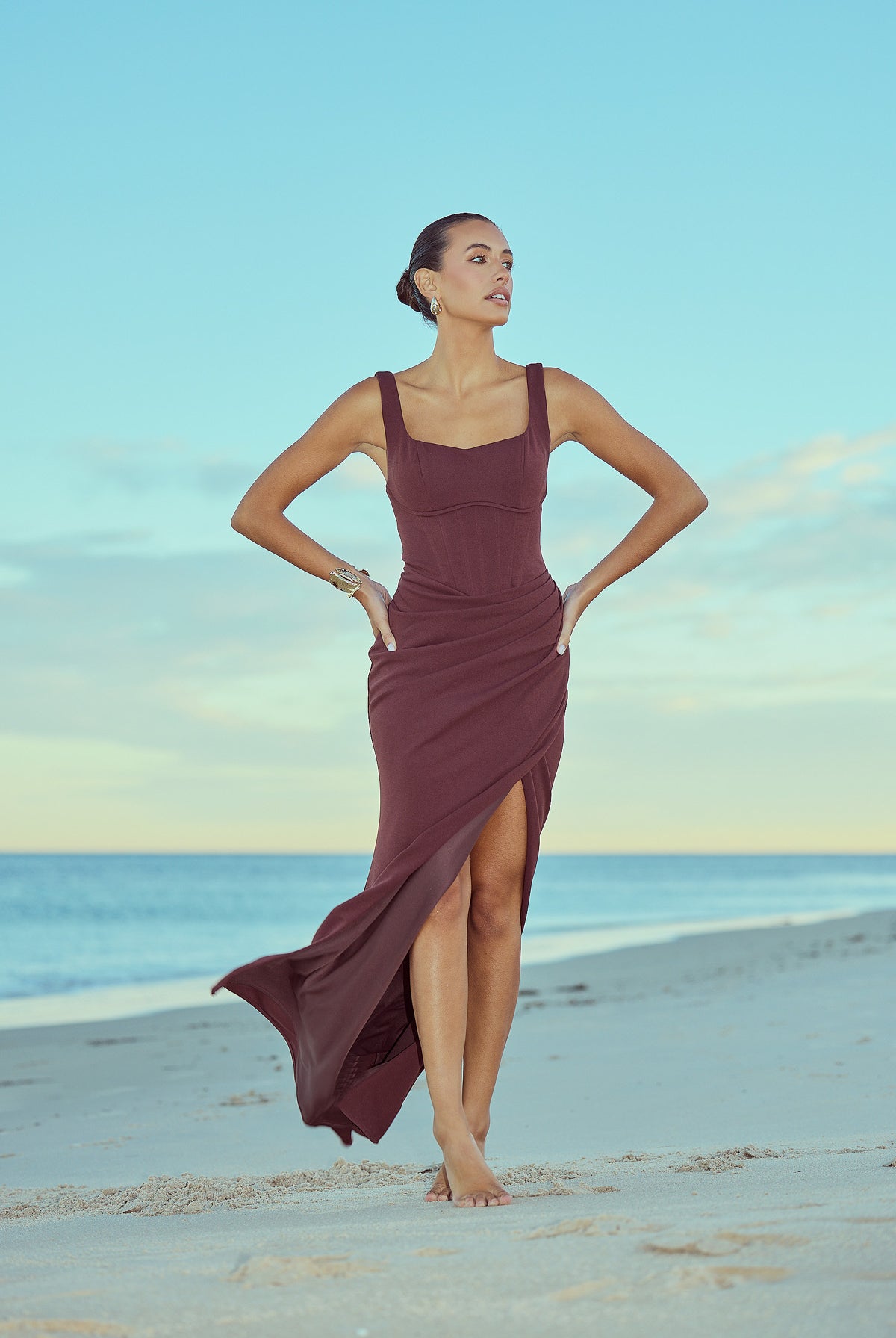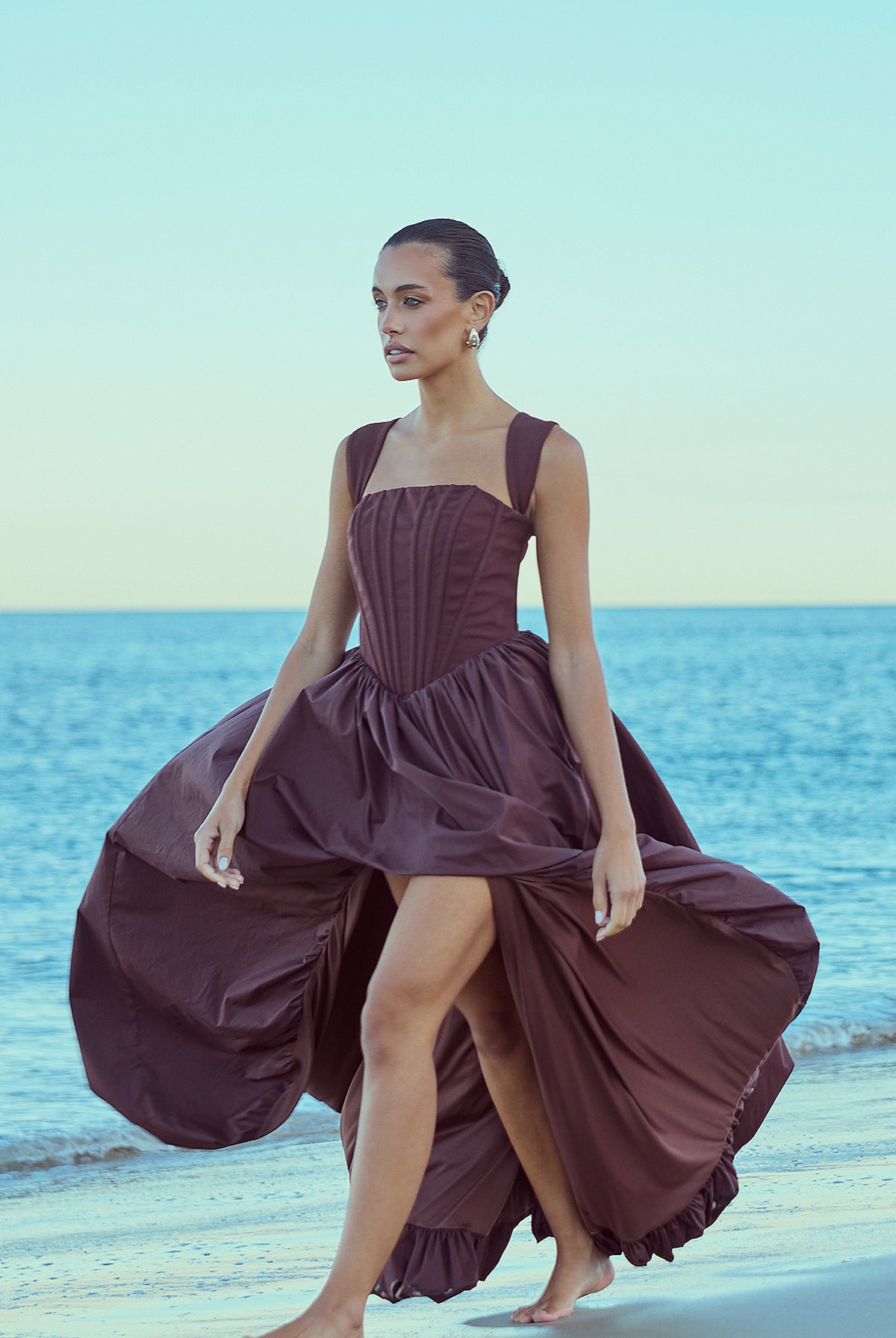 From silky satin dresses that move with the breeze, to sculptural crepe pieces that echo the shapes of sun-bleached stones and sea-carved cliffs - each outfit tells a story of freedom, individuality, and timeless elegance.