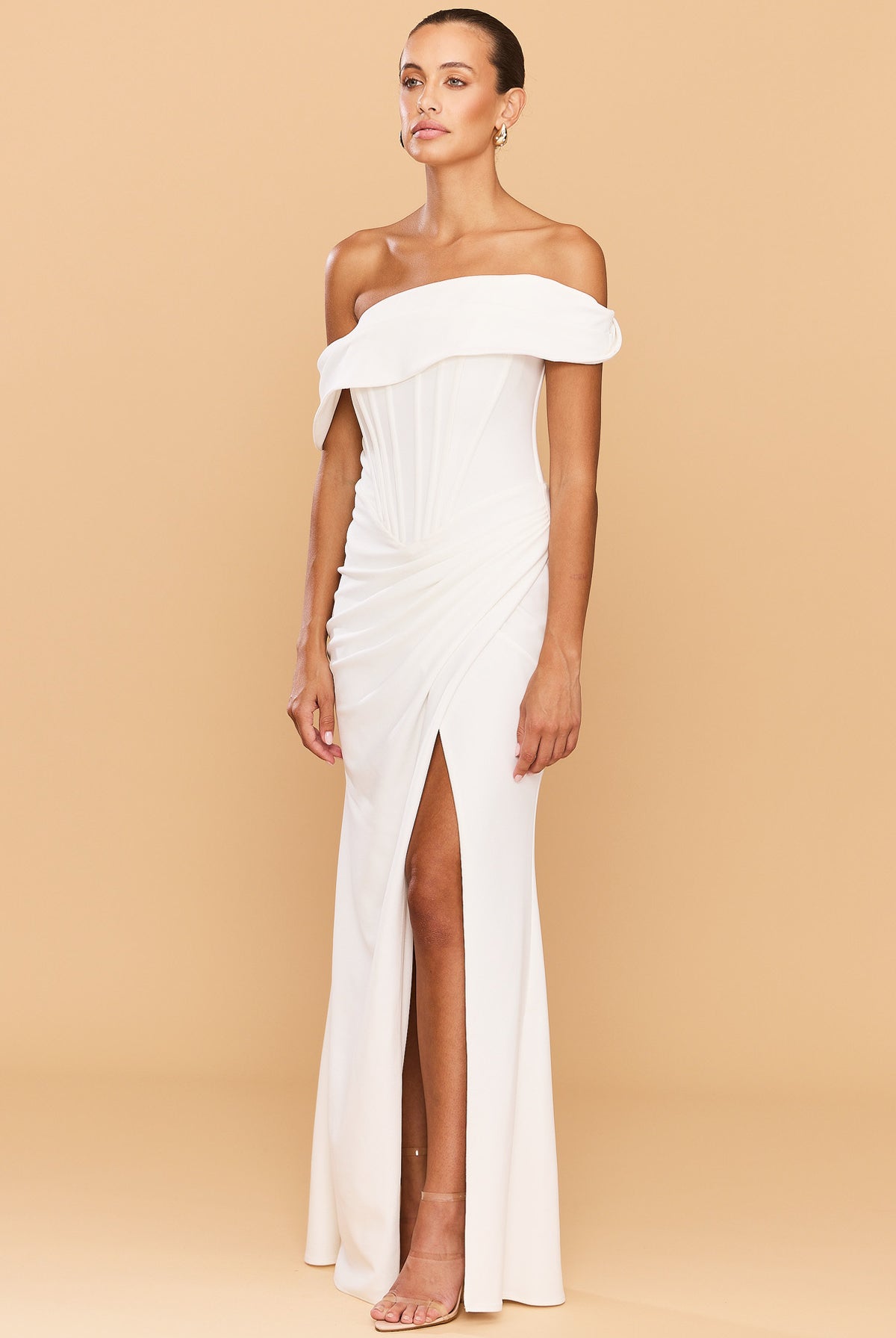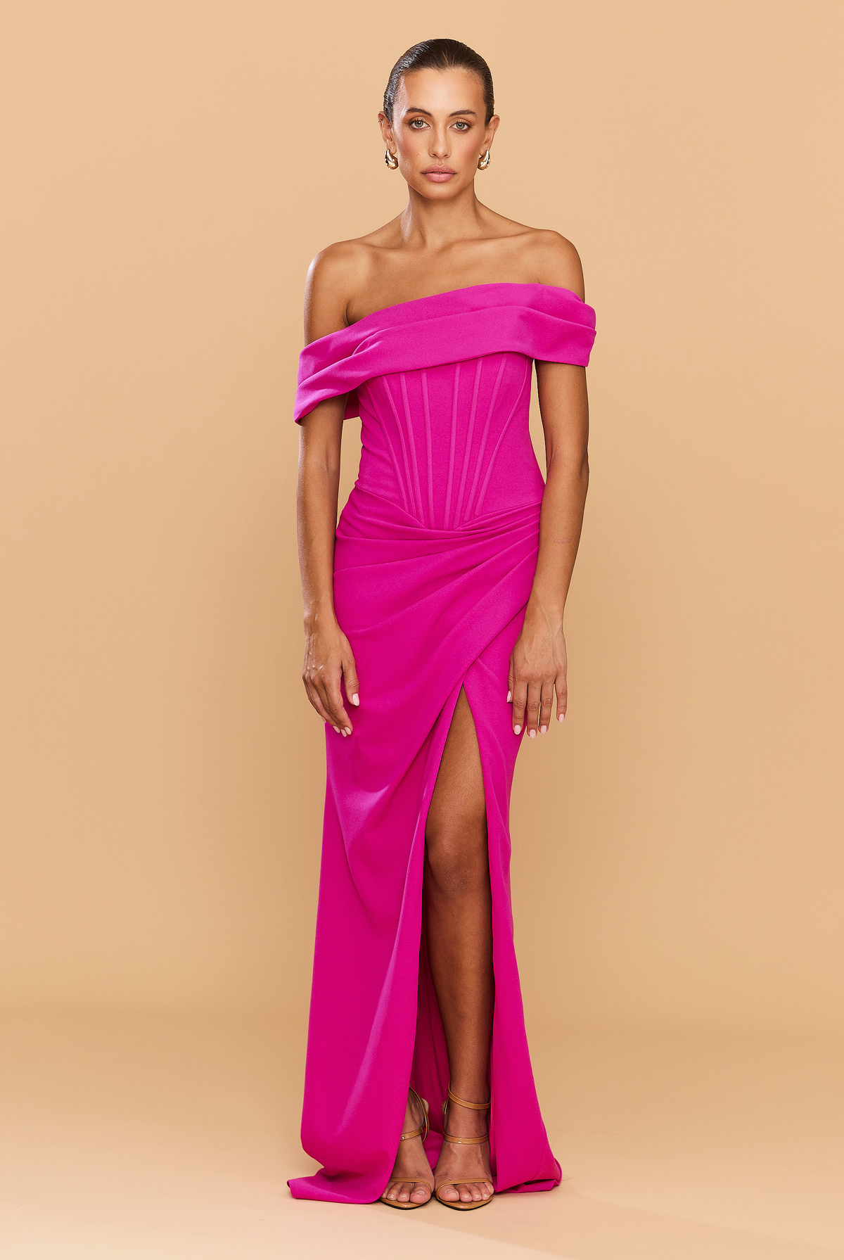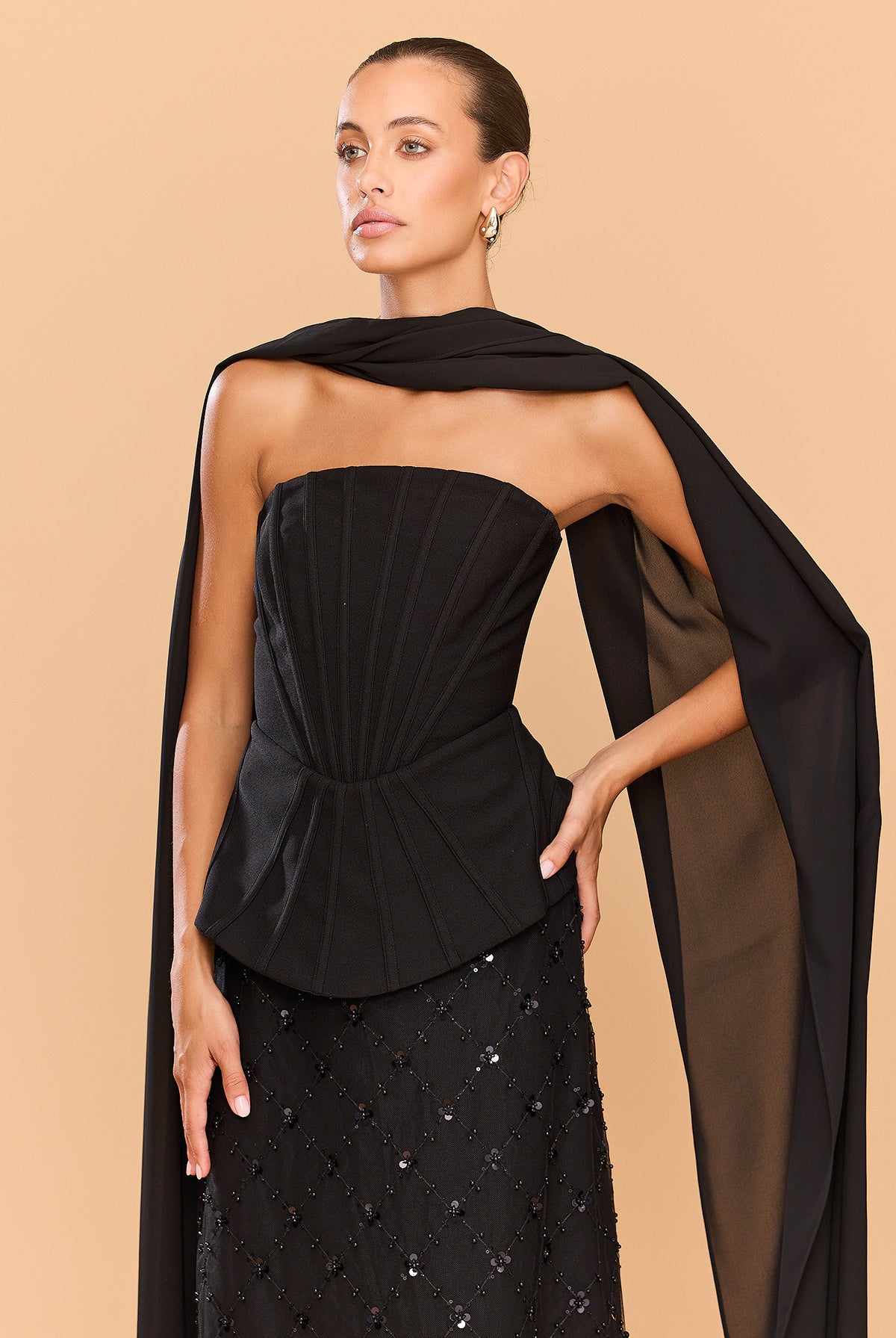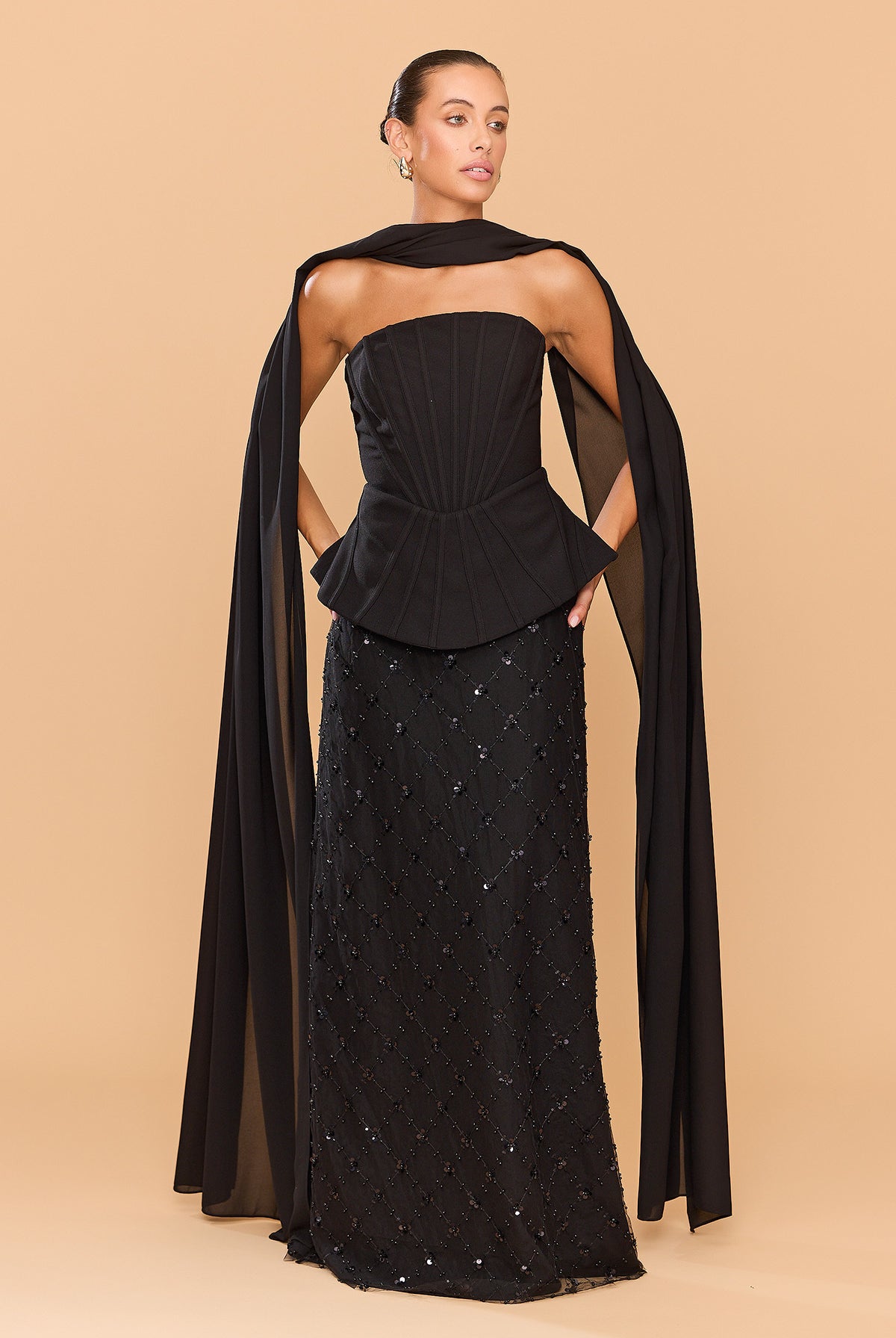 From silky satin dresses that move with the breeze, to sculptural crepe pieces that echo the shapes of sun-bleached stones and sea-carved cliffs - each outfit tells a story of freedom, individuality, and timeless elegance.