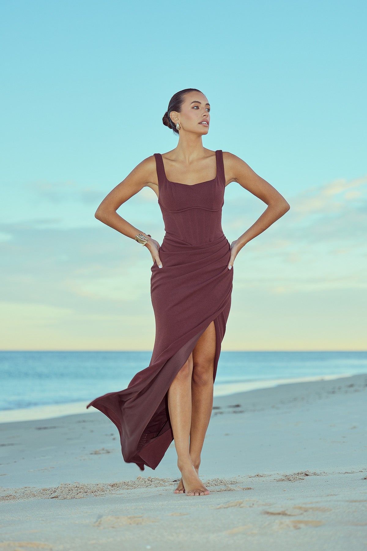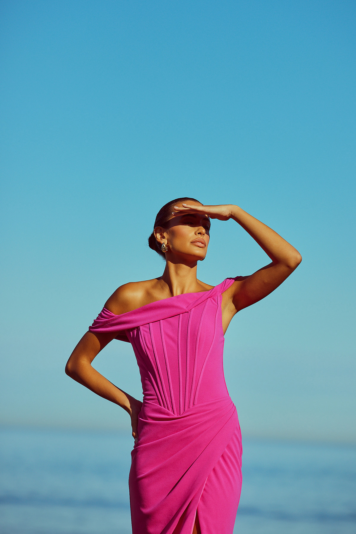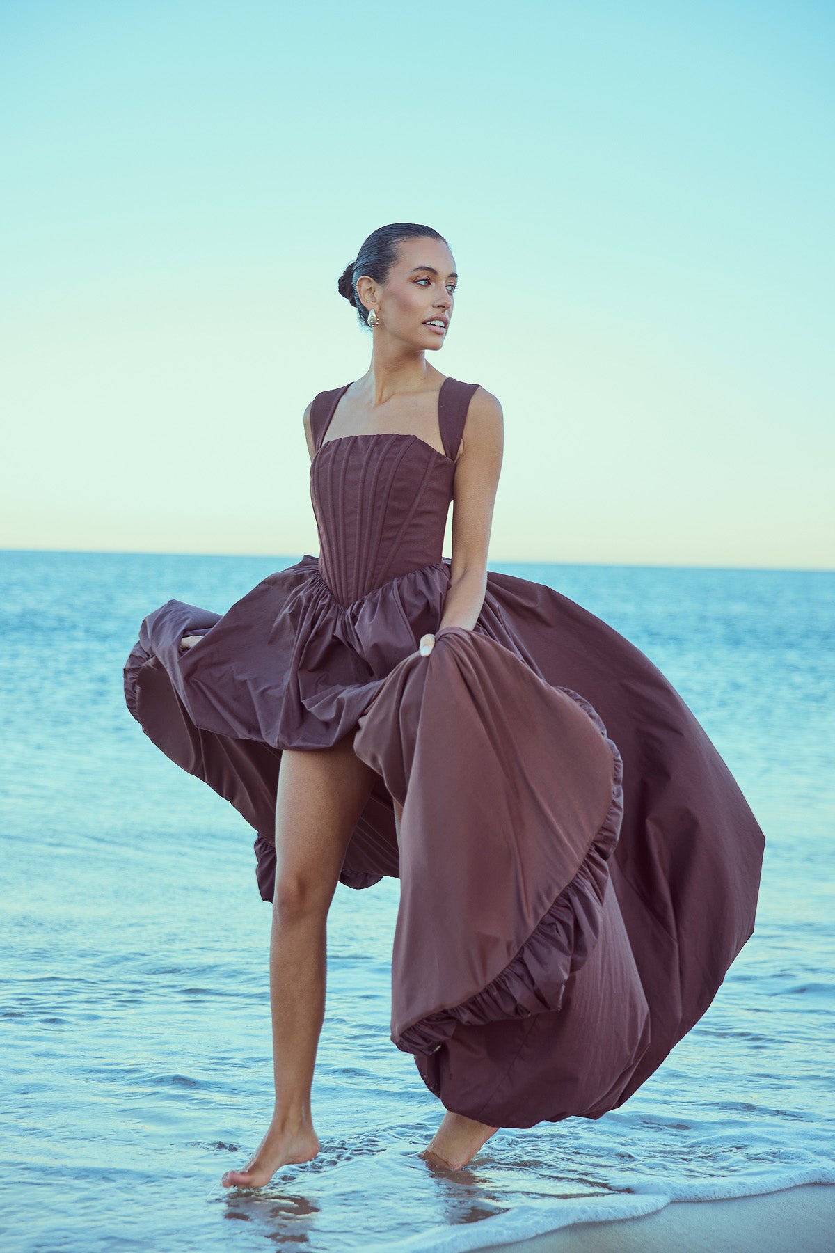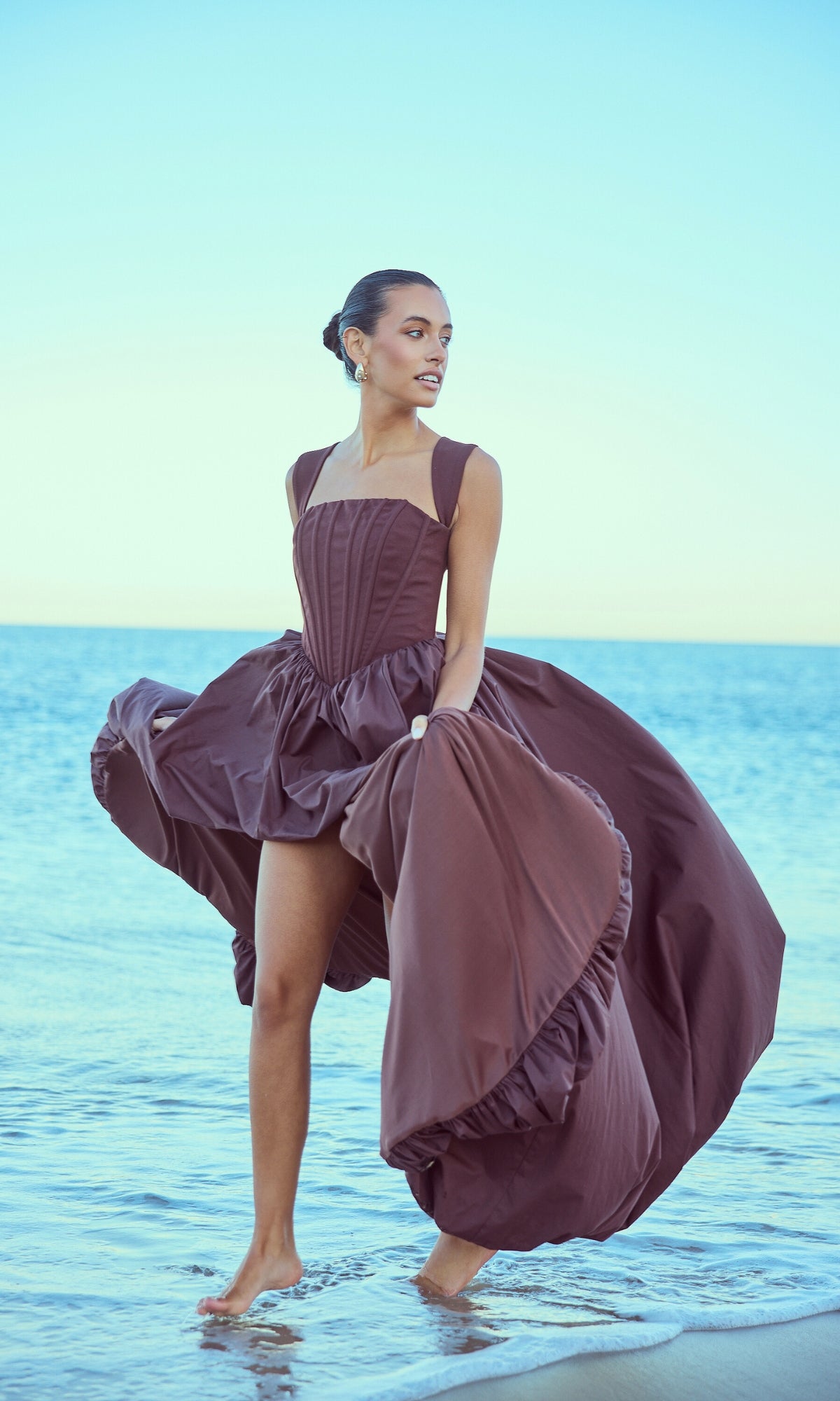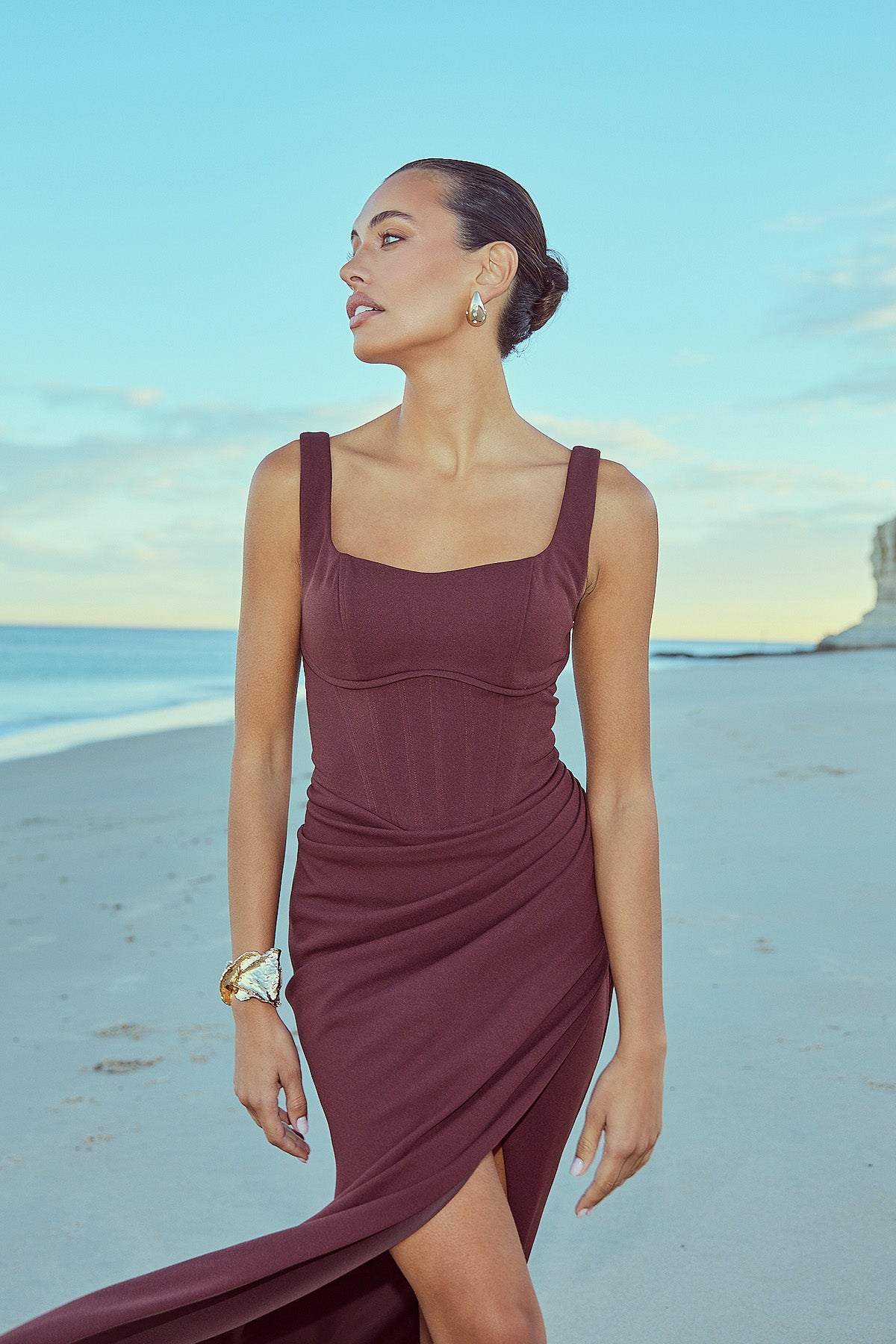 From silky satin dresses that move with the breeze, to sculptural crepe pieces that echo the shapes of sun-bleached stones and sea-carved cliffs - each outfit tells a story of freedom, individuality, and timeless elegance.