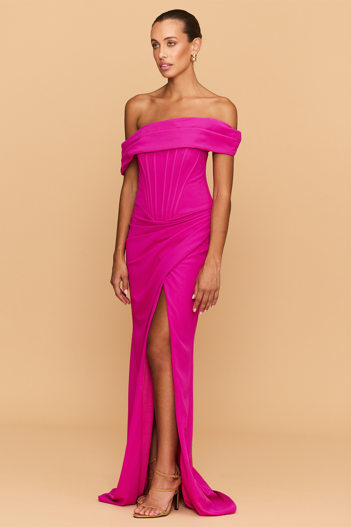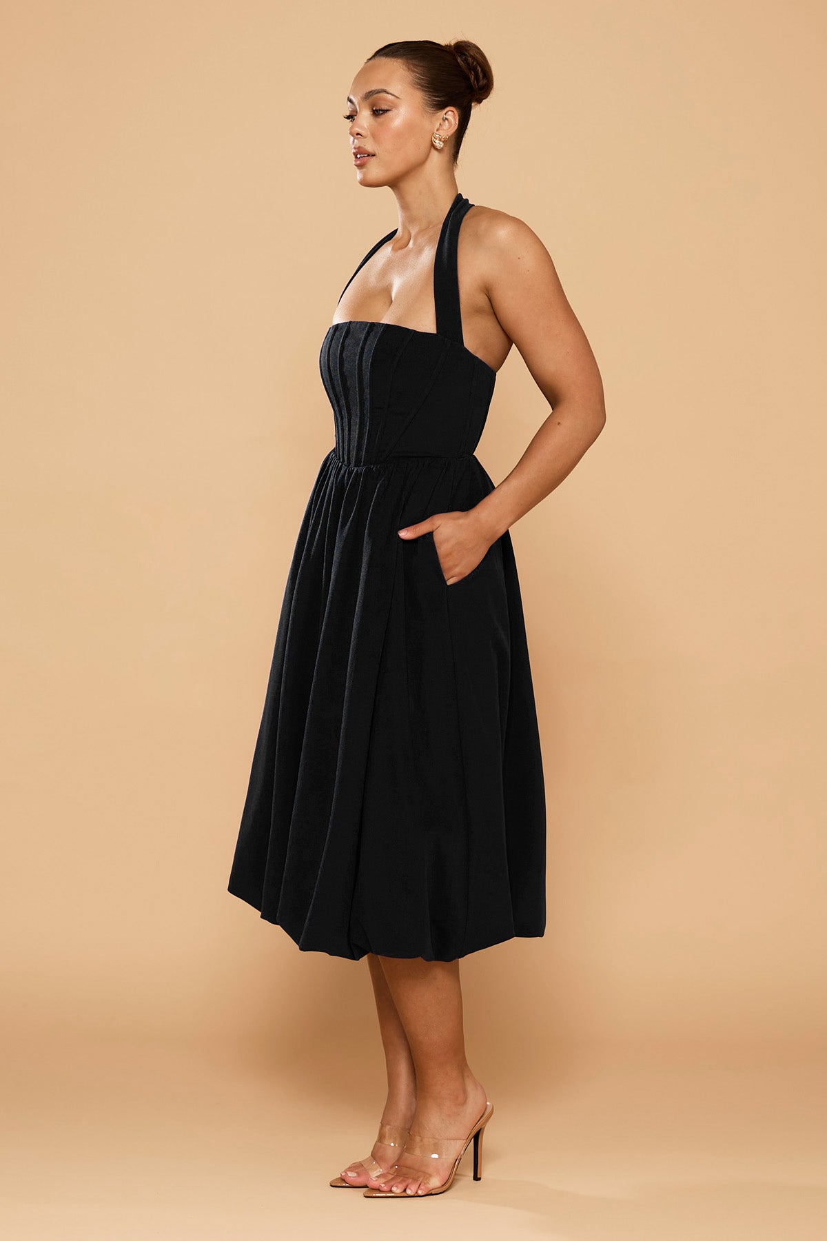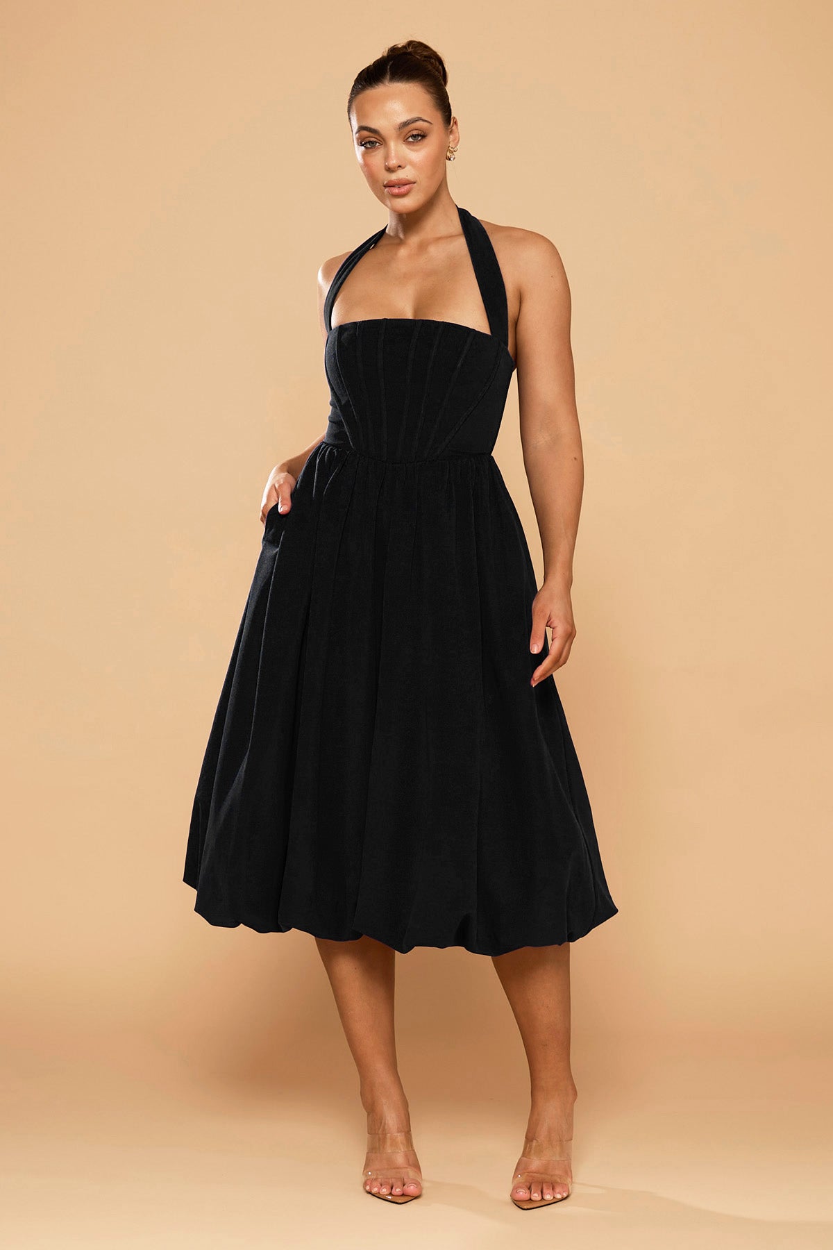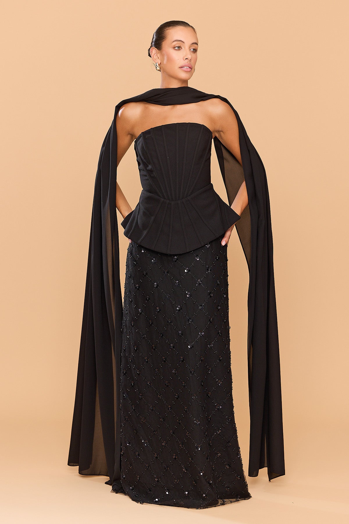 From silky satin dresses that move with the breeze, to sculptural crepe pieces that echo the shapes of sun-bleached stones and sea-carved cliffs - each outfit tells a story of freedom, individuality, and timeless elegance.