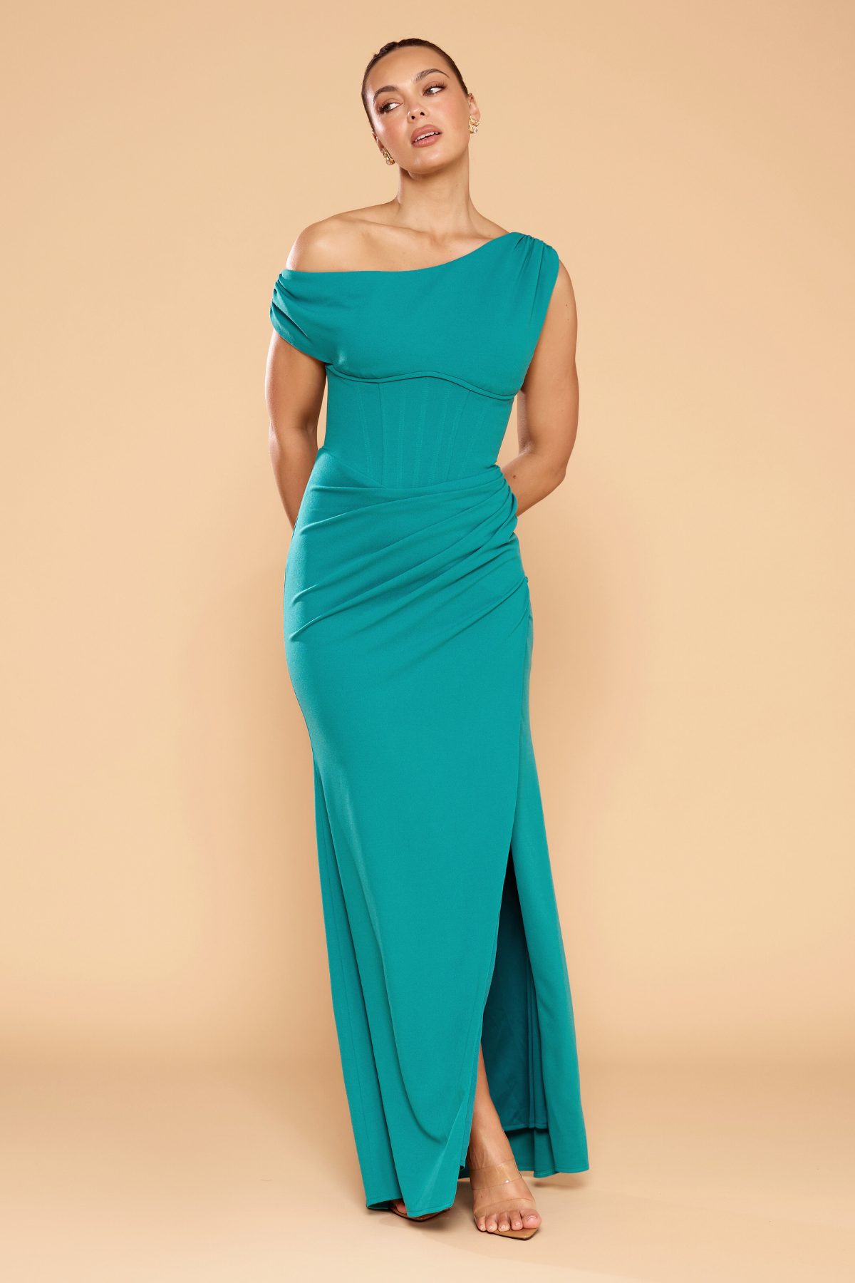 Phoebe Cowl Neck Gown - Teal
