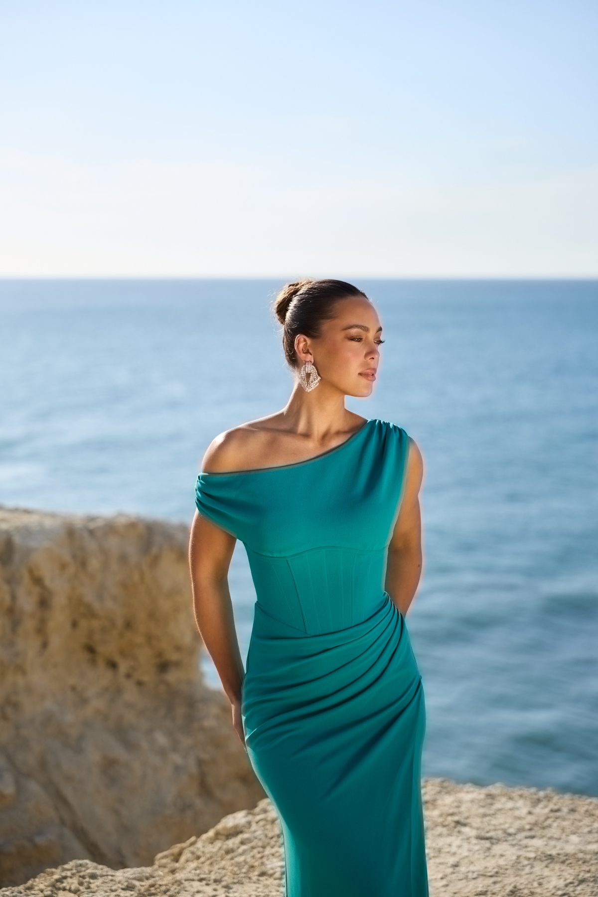 Nicolina Off Shoulder Gown - Teal Blue