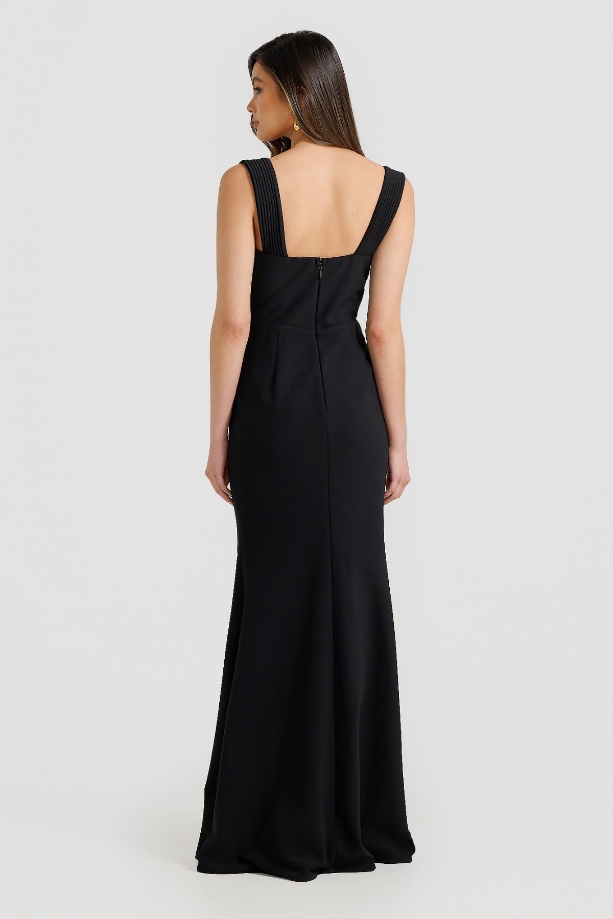 - Linear tucked details on neckline and straps