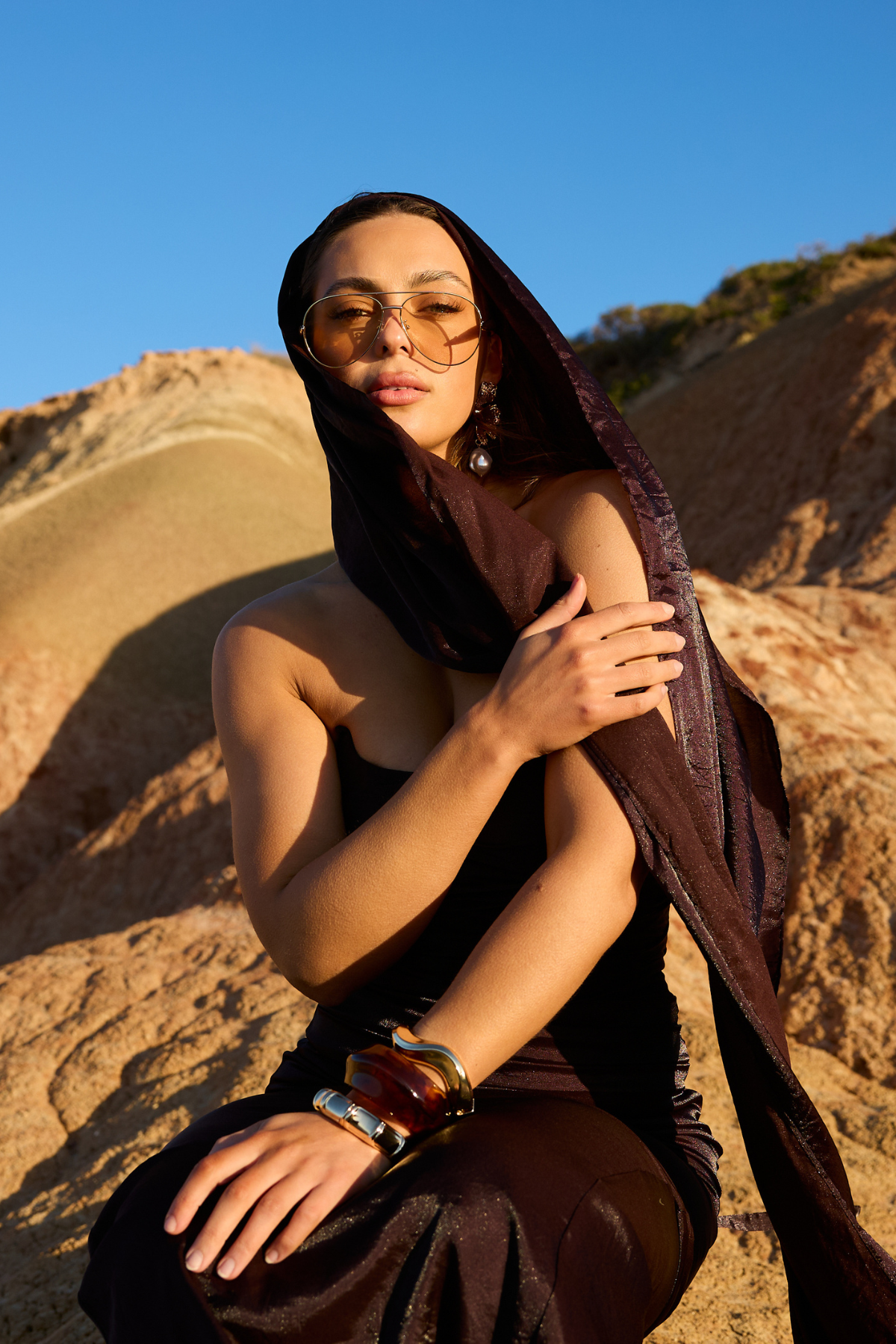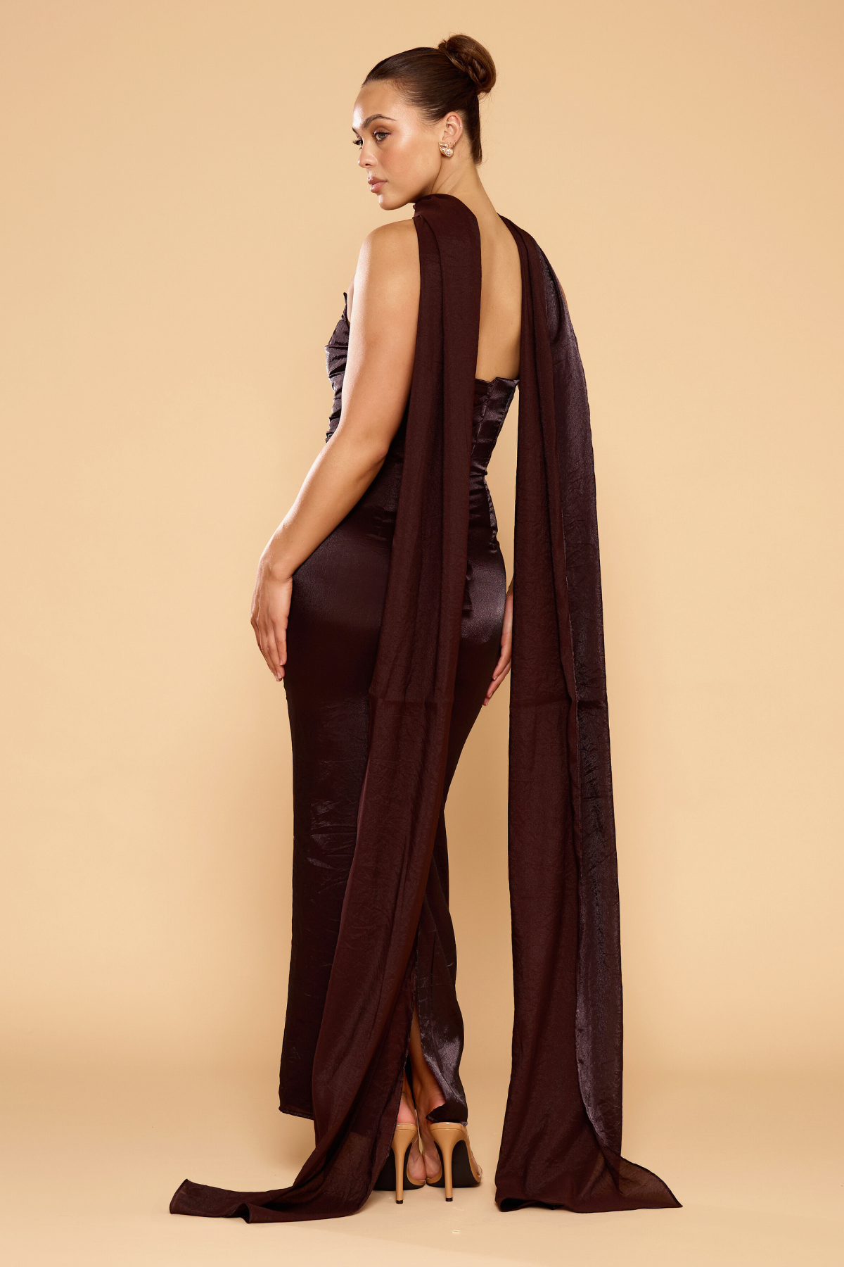 Evangeline Gown with Scarf - Chocolate