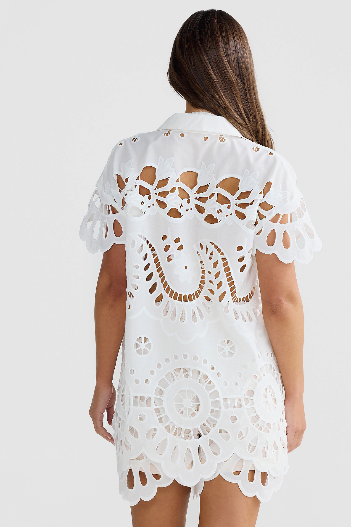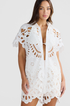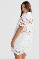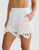 Elevate your summer wardrobe with our Laser Cut Blanca Lace Shorts. Designed for both style and comfort, these shorts feature intricate lace detailing and a scalloped hem line that adds a touch of elegance to any outfit. Whether you pair them with a casual tank or our matching Jada Blouse, these shorts will keep you looking effortlessly stylish. Perfect for sunny days and warm evenings, the Laser Cut Out Lace Shorts are a must-have addition to your summer collection.