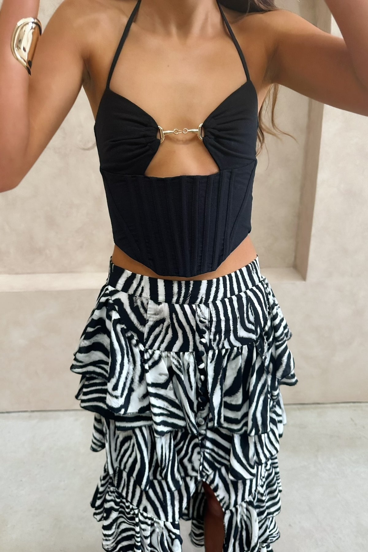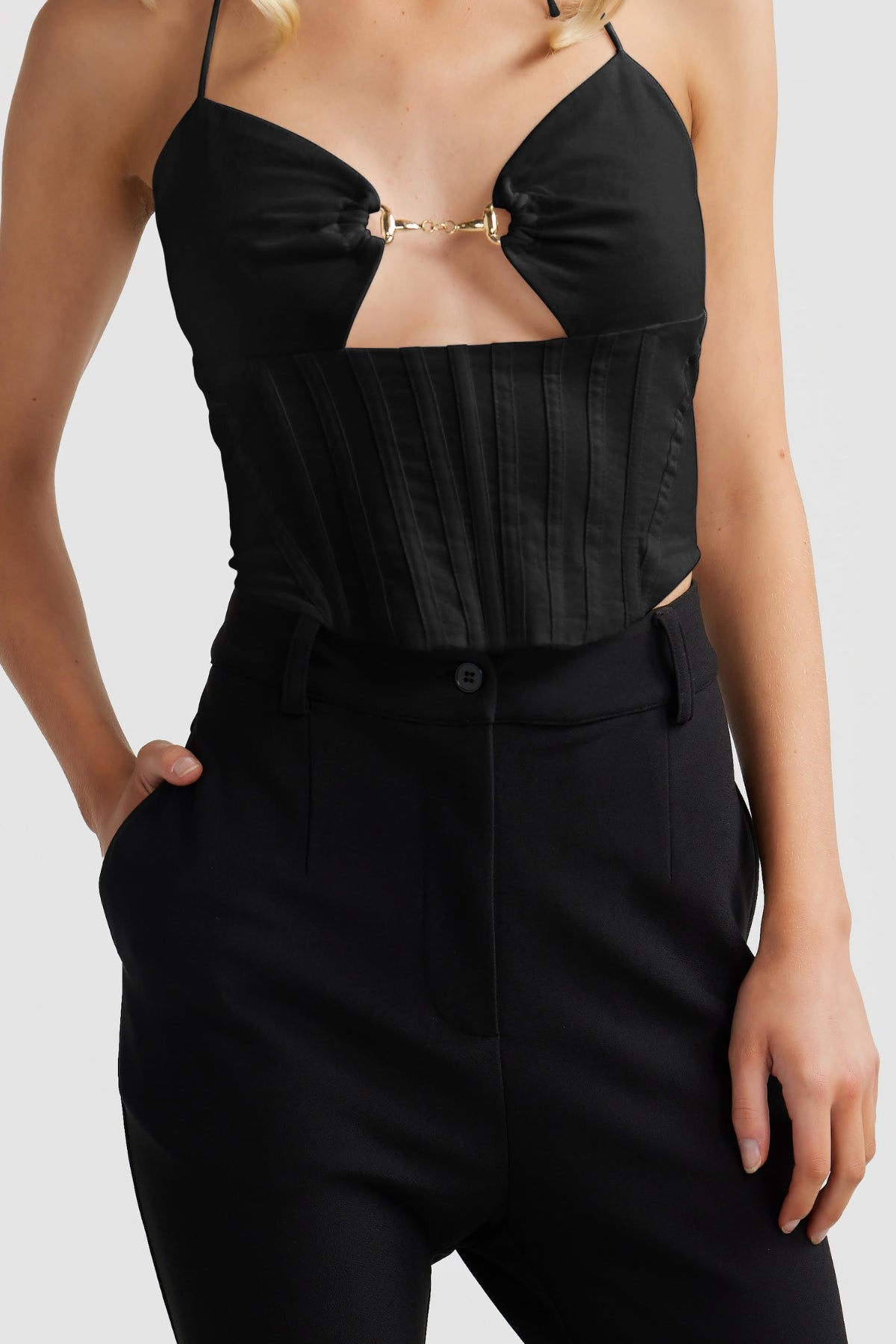The perfect staple to elevate all your outfits, meet our Capri Corset Top. Featuring a fitted bodice with bones, subtle cutout and delicate gold hardware. The Capri Corset Top combines elements of both sweet and sultry, effortlessly flattering for any occasion taking you from day to night in ease.