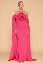 Chloe Cape Halter Gown - Hot Pink