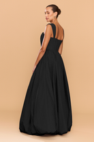 A sculptural ode to modern romance, the Malanie Bubble Gown is crafted from a rich cotton fabrication and designed to captivate. The structured, boned bodice cinches the waist, wide sat straps and a square neckline. A voluminous bubble skirt adds dramatic movement, finished with a leg split for a touch of allure. Fully lined and masterfully constructed, this gown is a statement in texture, silhouette, and elevated elegance.