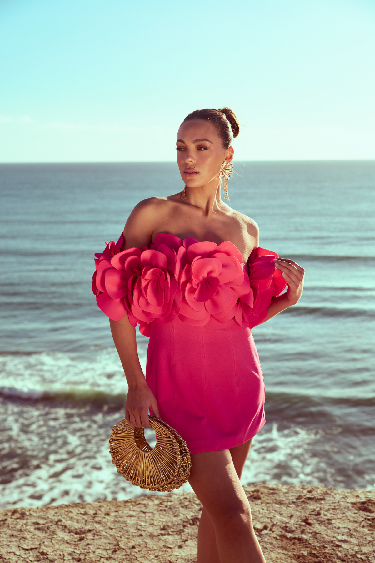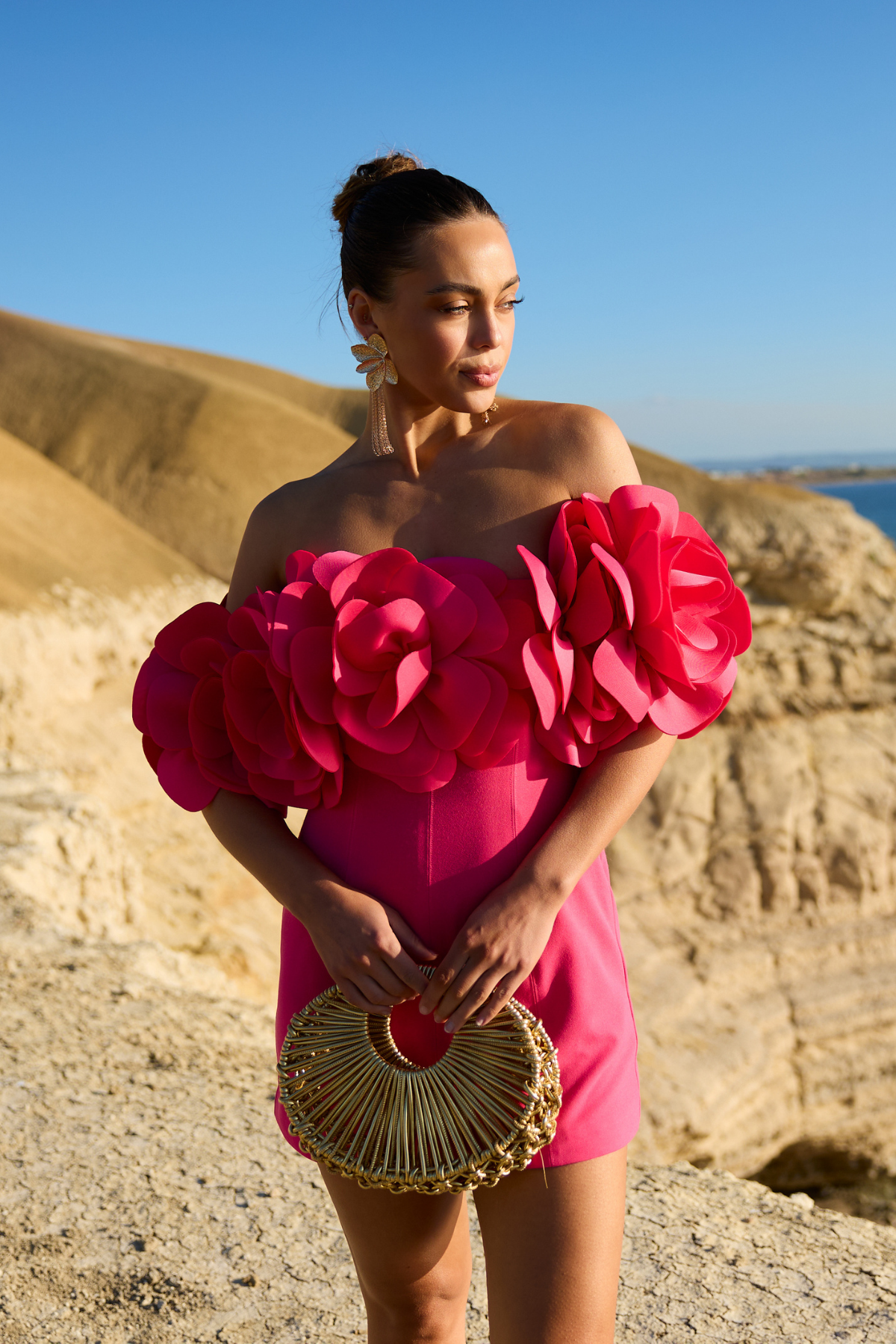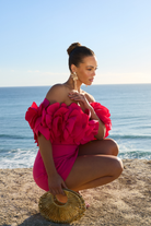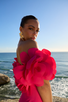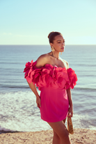 Make a lasting impression in this Daphne Off Shoulder Mini Dress, a vibrant statement piece designed for high-glamour celebrations. This striking hot pink dress features a sleek, body-con silhouette that is perfectly balanced by a dramatic, off-the-shoulder neckline adorned with an abundance of 3D floral appliqués. It is the ultimate fusion of modern structure and feminine romance, ensuring you stand out at any cocktail event.