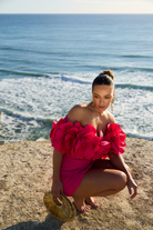 Daphne Off Shoulder Mini Dress - Hot Pink