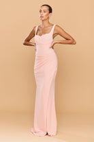 Step into elegance with the Elena Gown designed to sculpt and accentuate the female form. The full-length gown exudes timeless sophistication, featuring a structured bodice with a 90's inspired square neckline and a curved under bust pipping detail. The draping cascades gracefully along the waist, leading to a cross over split that can be worn either closed or open. Made from our premium stretch bonded crepe fabric, the Elena Gown combines comfort with style.