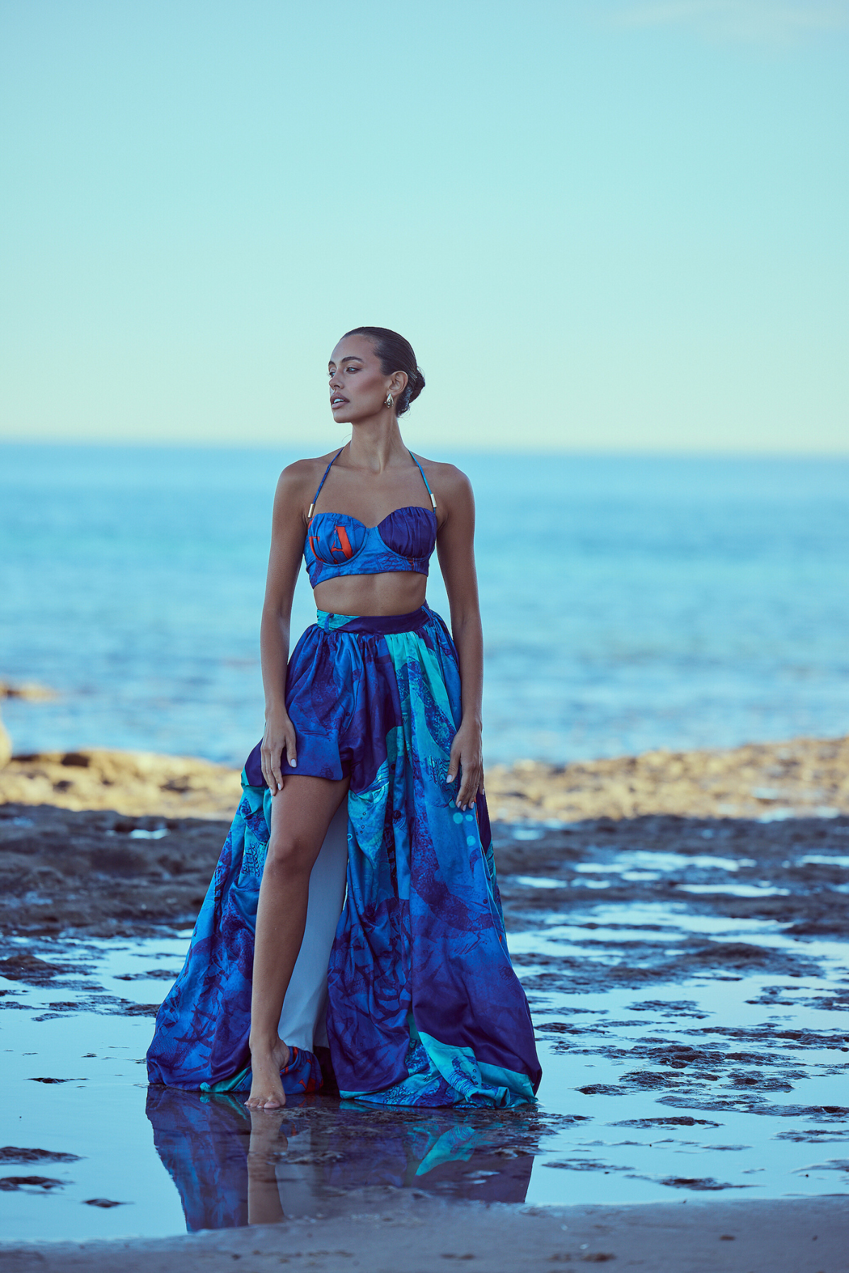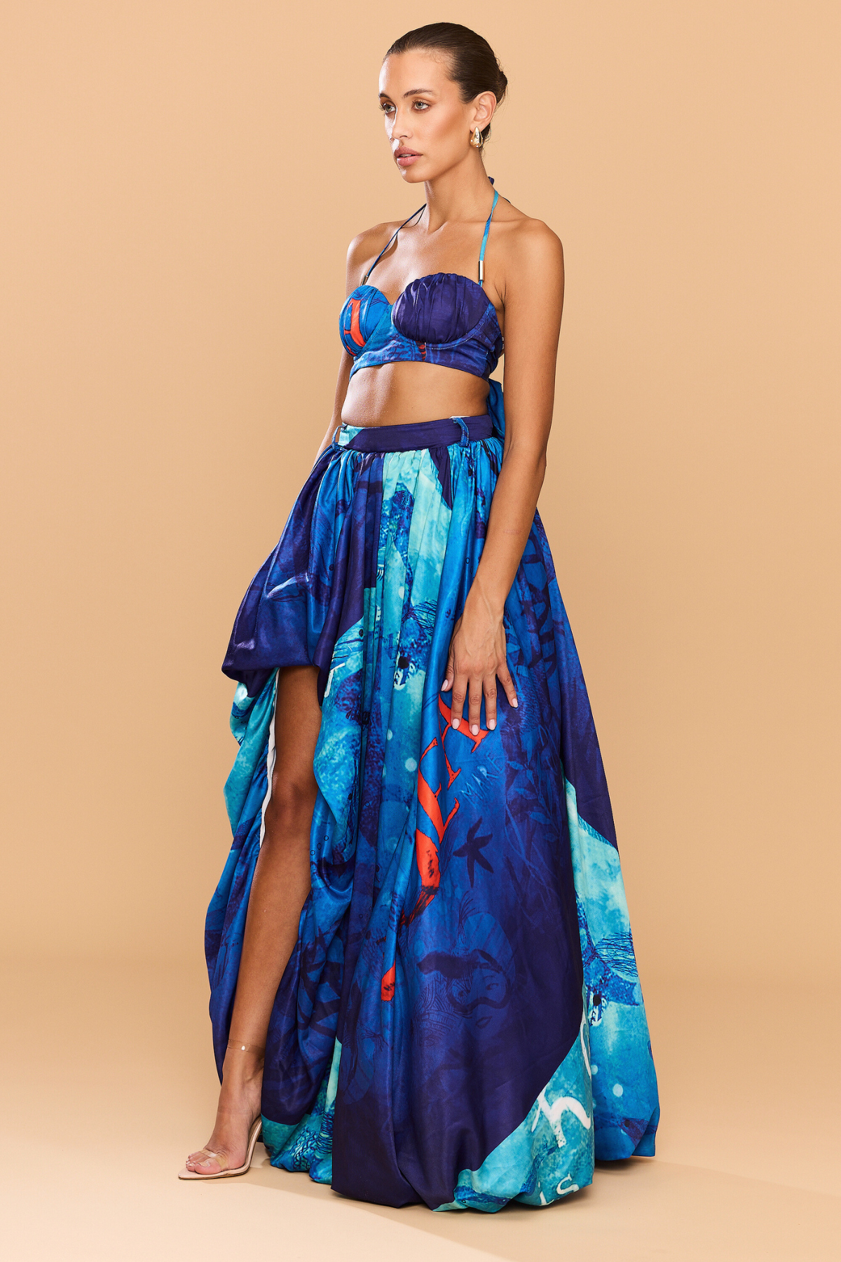 Make waves with the Melody Bubble Skirt, a bubble high-low design that moves beautifully with every step. Its voluminous silhouette and playful front slit add drama and elegance, while the Sea Print gives it a dreamy coastal charm. Perfect for summer soirées, beach escapes, or making a statement wherever you go.